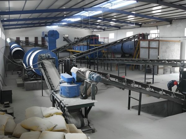 The process flow of a compound fertilizer production line can generally be divided into: raw material batching, raw material mixing, raw material granulation, granule drying, granule cooling, granule classification, finished product coating, and finally finished product packaging.