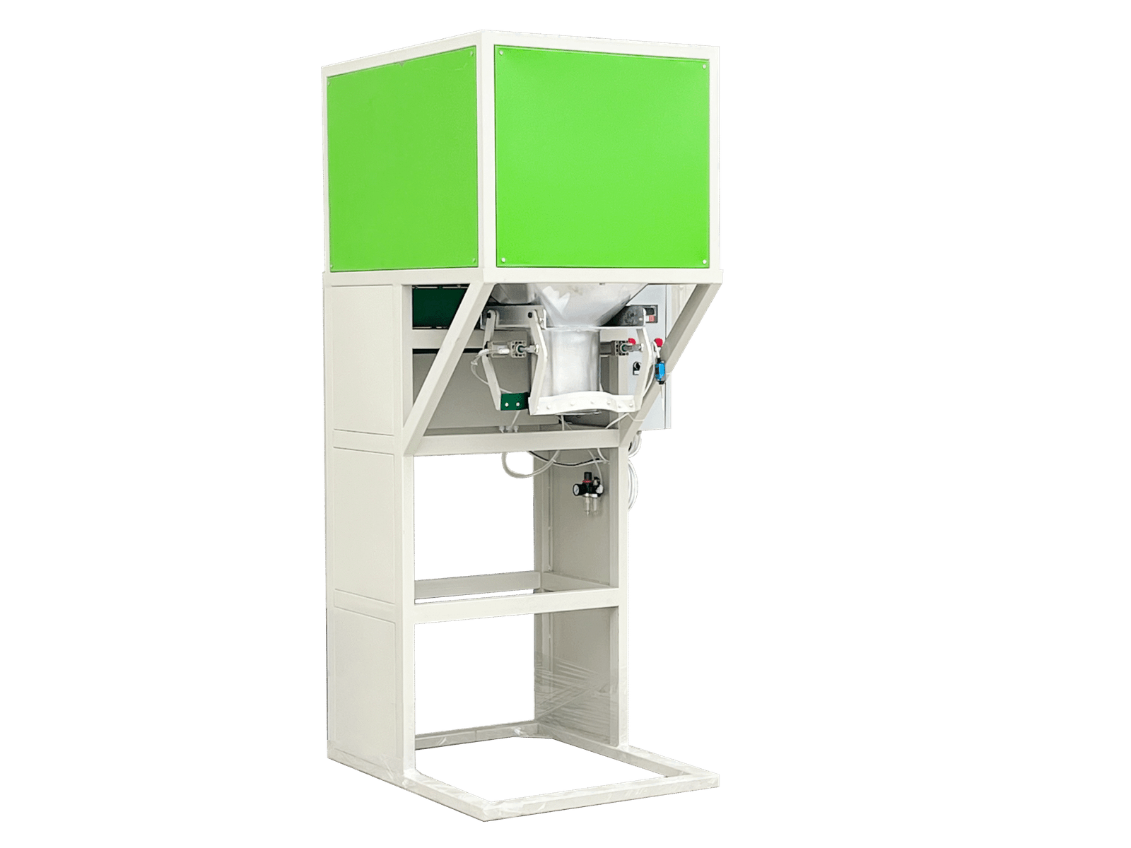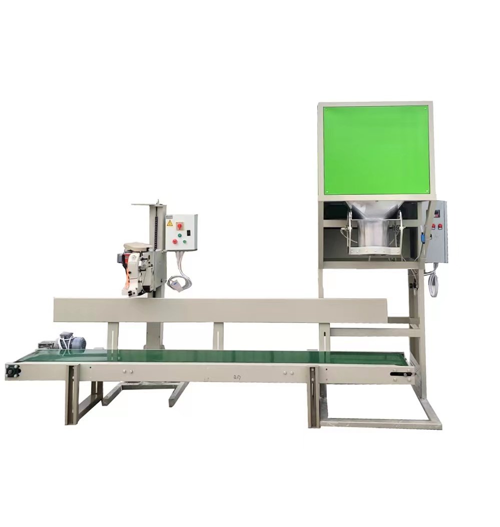 Features of this machine: It integrates feeding, weighing, bag clamping, conveying and bag sewing.