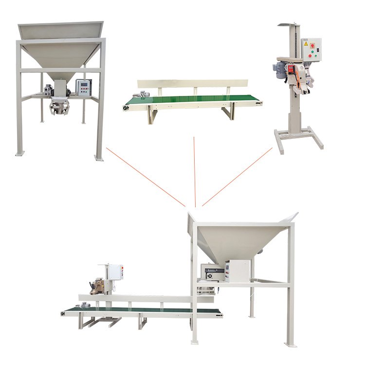 Features of this machine: It integrates feeding, weighing, bag clamping, conveying and bag sewing.